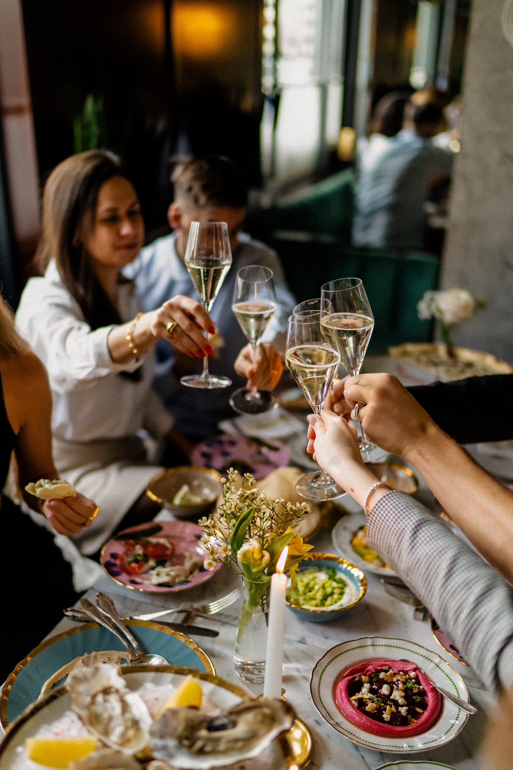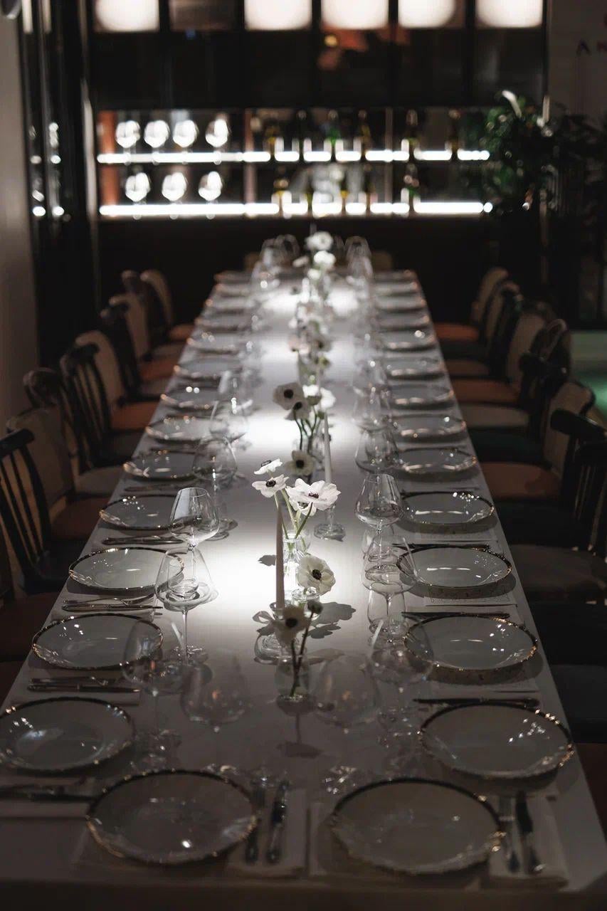 Elegant table setups. Tailored, pre-set menus. Shared plates. Lively rhythm and the energy of the moment.